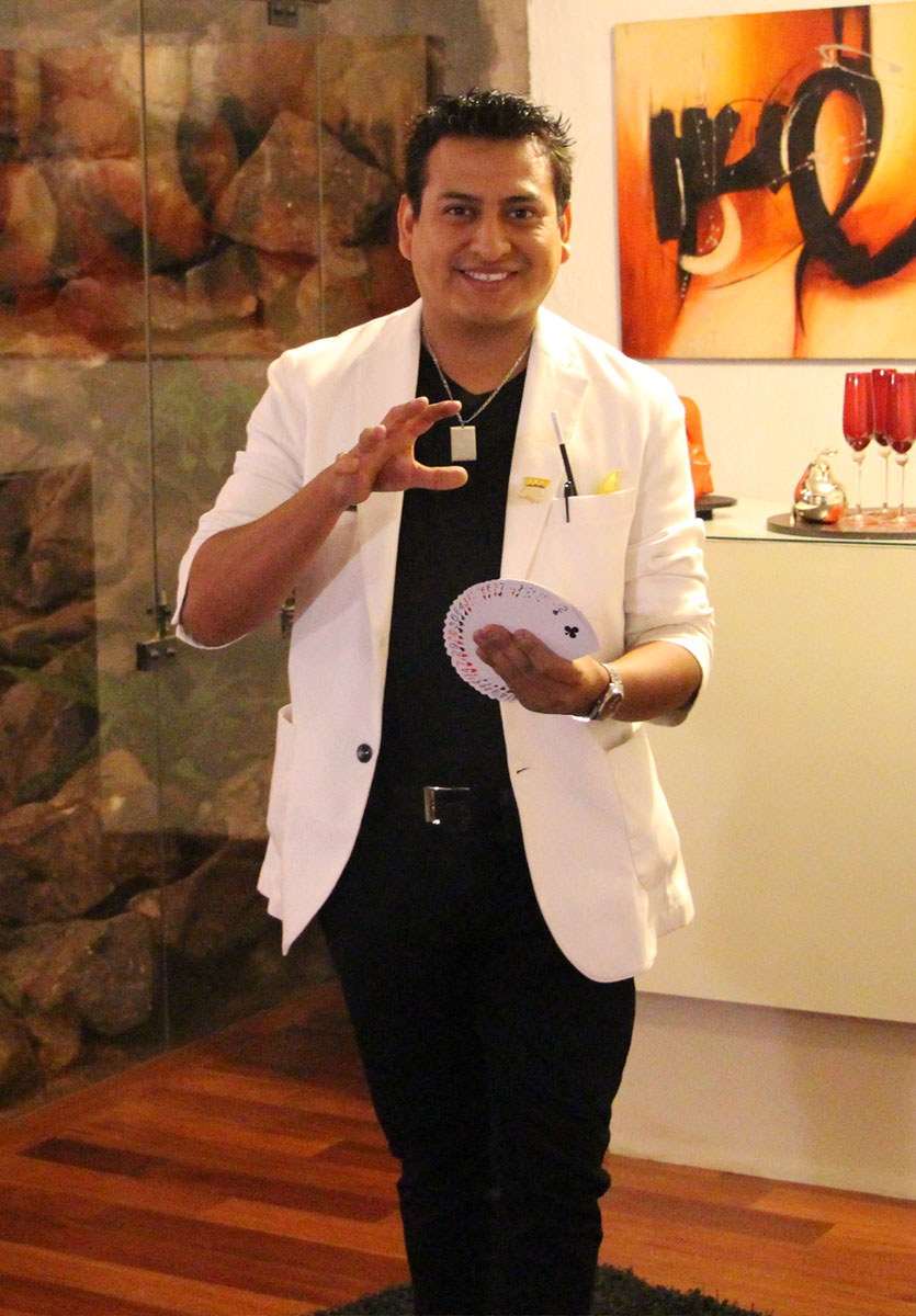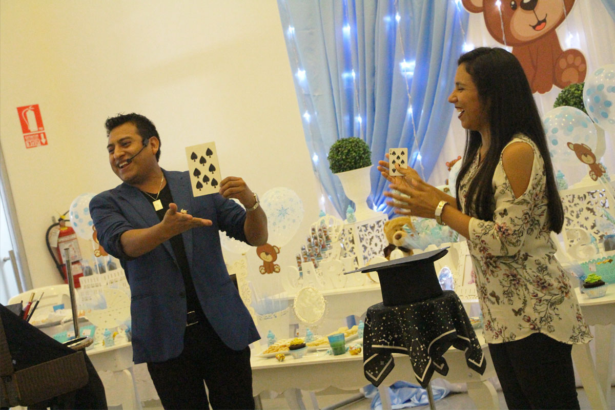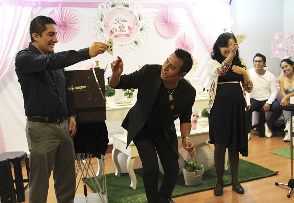 Pensando en la comodidad y entretenimiento tanto de los anfitriones como de los invitados, nuestras propuestas mágicas están estructuradas con el más fino humor, ilusión y su dosis perfecta de magia, consiguiendo así todos pasar, un grato, divertido e inolvidable momento.