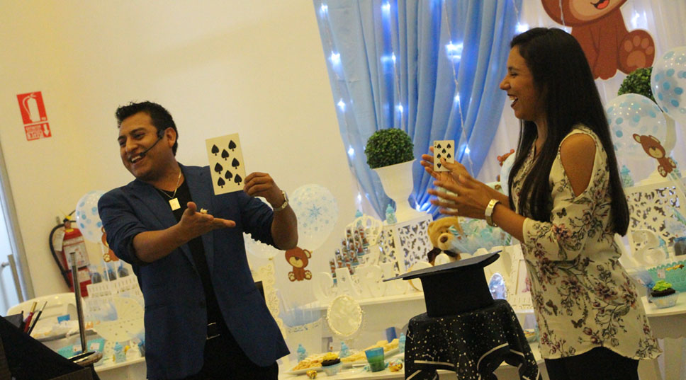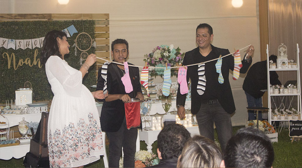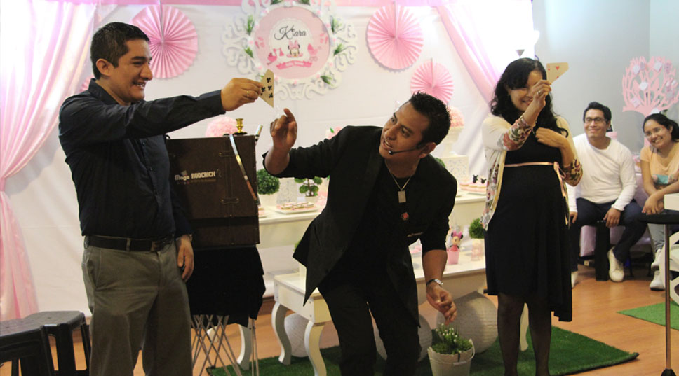Este paquete está diseñado para celebrar tu Babyshower con full magia, empezaremos recepcionando a tus invitados por una hora, con efectos exclusivos y sorprendentes de nuestra MAGIA CLOSEUP, pensados para sorprender hasta la mente del adulto más escéptico, esto sucederá desde la hora de invitación o media hora después.