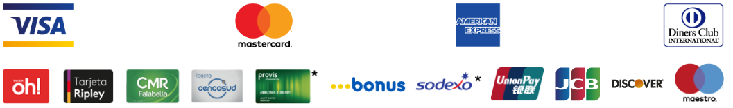Aceptamos todas las tarjetas de crédito: VISA, MASTERCARD, DINERS, AMERCIAN EXPRES, OH, CMR, RIPLEY, entre otros.