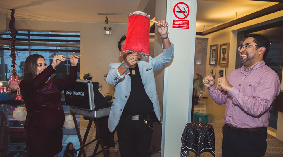 *En nuestras presentaciones, ningún invitado ni los anfitriones pasaran momentos incomodados, pues el objetivo de nuestro show es que todos se diviertan, se sorprendan y se lleven un grato recuerdo de este dia tan especial, por ello nuestros actos están estructurados con el más fino humor, ilusión y su dosis perfecta de magia.
