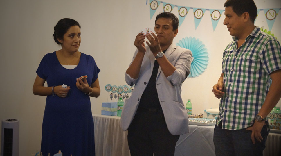 Este paquete está diseñado para celebrar tu Babyshower con full magia, empezaremos recepcionando a tus invitados por una hora, con efectos exclusivos y sorprendentes de nuestra MAGIA CLOSEUP, pensados para sorprender hasta la mente del adulto más escéptico, esto sucederá desde la hora de invitación o media hora después.