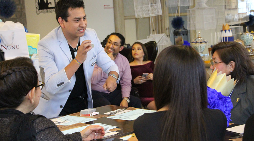 Luego haremos un intermedio para minutos después empezar un show de magia central, MAGIA DE SALÓN, por 45 minutos, el cual estará dirigido a todo el público en general, el mago se situará en el medio del salón y frente a todo el público para interactuar con los presentes, siendo el hilo conductor del número de magia y el público participara activamente del número y es que, sin la participación de los presentes, este tipo de magia pierde atractivo.